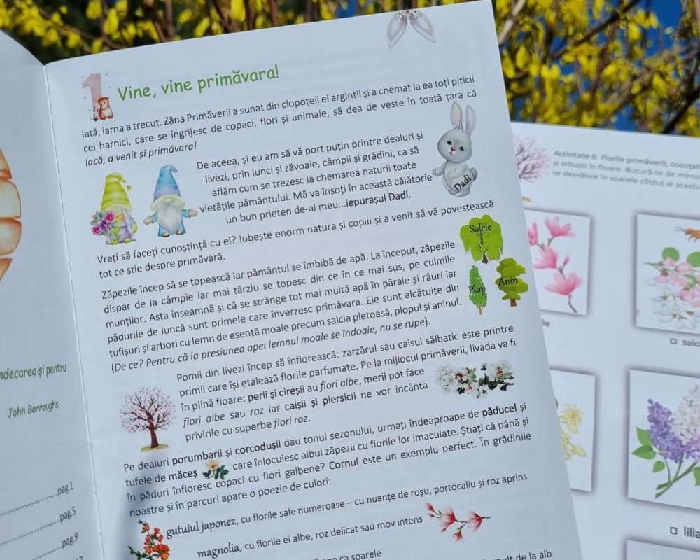 Prin joacă, îi veți ghida pe copii să învețe, înțeleagă și iubească natura și primăvara. Mânuțele lor vor fi cu siguranță ocupate, iar fețele curioase și zâmbitoare.